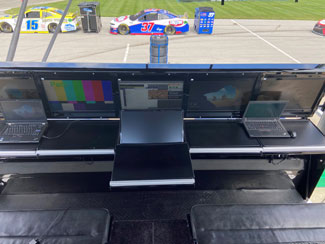 “One of the first things we had to do for the group at the shop was setting up the live track feed to get to them,” said Perry. “Regular cable or satellite television is too delayed for it to be effective. We’re sending them the same TV feed at the same time the crew at the track is seeing it on the pit box.