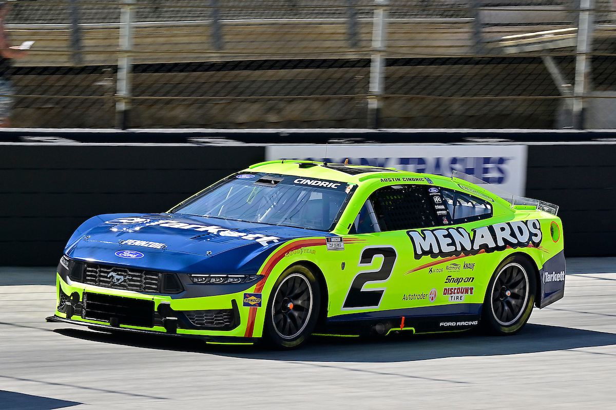 - At the end of the stage, the No. 22 Menards/NIBCO team pitted as other competitors remained on track that had pitted previously. After winning the race off pit road, Cindric was collected in a multi-vehicle incident on the restart at the exit of turn 2, effectively ending the day after showing tremendous speed early. Cindric maintains the regular season point lead by 35 points.